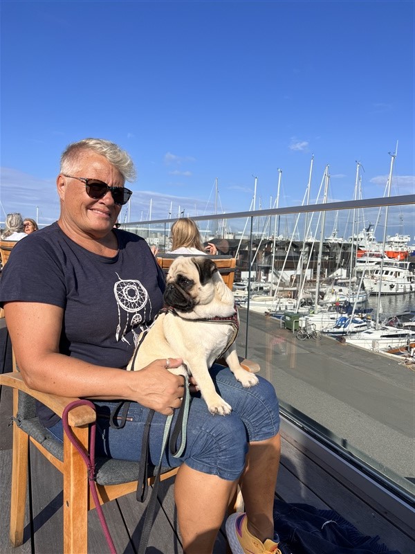 Vores helt igennem glade, tillidsfulde og nysgerrig lille pige, som kravler ind under huden på alle.Hun elsker vores gåture, ligge og gnaver i et ben, men bedst af alt er at ligge helt oppe i hovedet på en.