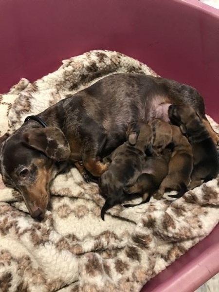 Merle gave birth to 5 well-fed little Christmas Eve, both mother and children thrive.